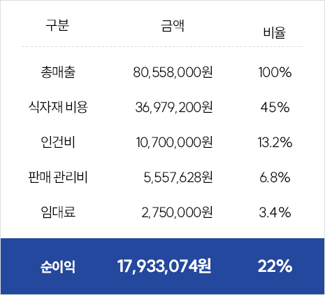 안정적인 매출로 장기적으로 믿고 창업할 수 있는 브랜드입니다.