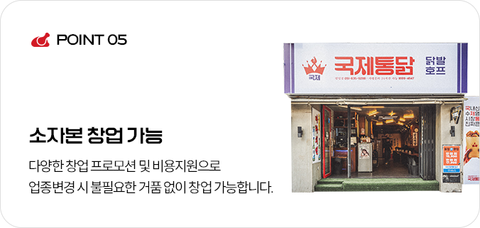 소자본으로도 시작할 수 있는 합리적인 창업 시스템. 국제통닭이 여러분의 성공적인 첫걸음을 함께합니다